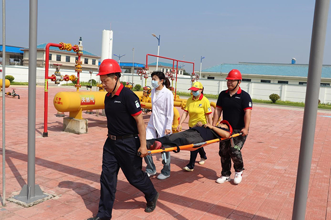 演練共分四大項內(nèi)容,包括模擬天然氣泄漏導(dǎo)致操作人員中毒的急救和護理;模擬天然氣匯管區(qū)管道法蘭泄漏引發(fā)火災(zāi)的應(yīng)急處理;模擬加油站汽柴油泄漏導(dǎo)致火災(zāi)的應(yīng)急處理;開展全員應(yīng)急逃生疏散演練。整個演練過程中,大家響應(yīng)快速、配合密切,各個環(huán)節(jié)銜接有序,險情排除及時,進一步驗證了事故處置方案的科學(xué)性、合理性和可行性,達到了預(yù)期的效果。