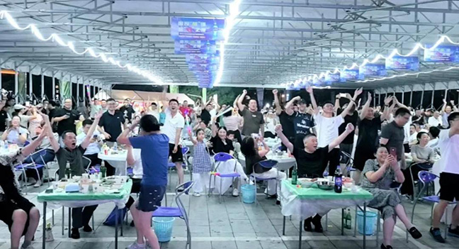 7月19日,為期一個(gè)月的“國(guó)投鮮鋒,盛蝦之宴”首屆龍蝦啤酒音樂(lè)節(jié)圓滿落幕。這場(chǎng)集美食、娛樂(lè)與互動(dòng)于一體的夏日盛宴,讓酒店戶外廣場(chǎng)成為市民夏夜打卡的“網(wǎng)紅地標(biāo)”——累計(jì)超1萬(wàn)人次的接待量、超50萬(wàn)元的營(yíng)收成績(jī),印證了活動(dòng)的超強(qiáng)吸引力。香辣、蒜蓉、十三香等十余種口味的龍蝦、滋滋作響的美味燒烤,與冰爽啤酒組成絕佳搭配。樂(lè)隊(duì)live演出奏響夏日旋律,趣味游戲互動(dòng)掀起陣陣歡笑,巨幕光影交織著歡呼與碰杯聲,讓整個(gè)廣場(chǎng)洋溢著熱烈歡快的夏日氣息。尤其在蘇超賽事期間,這里化身為第二觀賽現(xiàn)場(chǎng),讓球迷們?cè)诿朗撑c賽事的雙重加持下盡享狂歡。