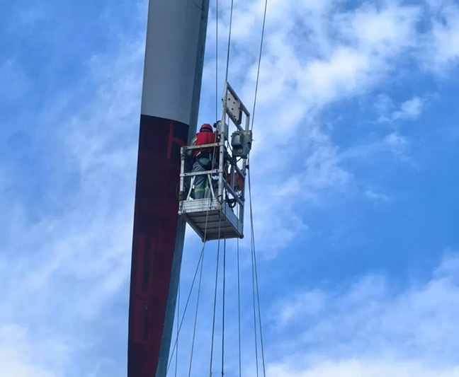 風(fēng)機平臺上,運維團隊目光緊鎖監(jiān)控屏幕和現(xiàn)場環(huán)境。他們與高空人員時刻保持聯(lián)絡(luò),憑借緊密的配合、豐富的經(jīng)驗和對設(shè)備的精準(zhǔn)操控,全力應(yīng)對海風(fēng)影響,穩(wěn)住作業(yè)平臺,確保高空作業(yè)的安全,齊心協(xié)力為 “葉片飛人” 保駕護航。