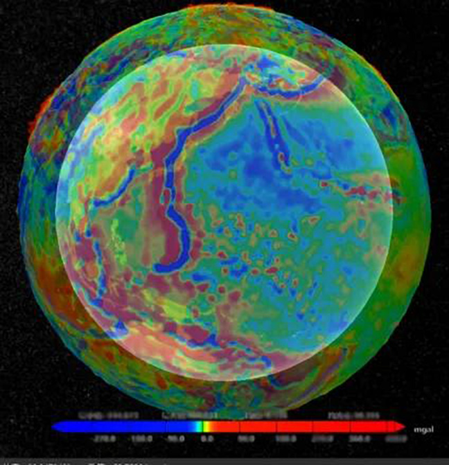 哪里重力強(qiáng),哪里的紅色就越深,哪里重力弱,哪里的藍(lán)色就越深,一目了然!效果堪比給地球做了個(gè)“重力版熱成像”!