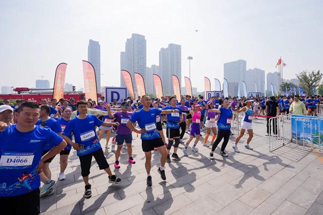早上8點(diǎn),鹽城國貿(mào)中心(先鋒中心)廣場已人聲鼎沸。參賽選手們陸續(xù)從四面八方齊聚于此,大家身著統(tǒng)一藍(lán)色賽事T恤,跟隨暖場音樂進(jìn)行熱身,現(xiàn)場化成歡樂的藍(lán)色海洋。“報(bào)名參加垂直登高賽后我一直在家里練習(xí)爬樓梯,雖然是第一次參加城市級垂直登高賽,但運(yùn)動都是相通的,我一定能取得好名次。”喜歡跑馬拉松的成先生信心十足。
