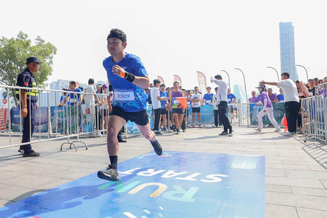 在鹽城國貿(mào)中心(先鋒中心)樓道內(nèi),運(yùn)動鞋與臺階的摩擦聲、此起彼伏的加油聲,瞬間交織在一起。謝先生是一名跑步愛好者,這是他第一次參加垂直登高賽。“感覺太刺激了,和平時(shí)在平地上跑步完全不一樣,每一步都要克服重力的影響,但我很享受這種挑戰(zhàn)自我的感覺。”謝先生一邊喘著粗氣一邊說道。