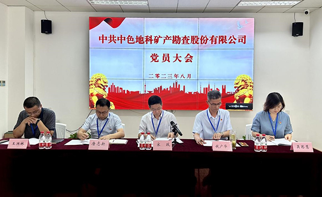 8月22日,中共中色地科礦產勘查股份有限公司委員會第一次黨員大會在京順利召開。鹽城國投集團黨委副書記、中色地科公司董事長宋政主持會議,國投集團分管資源板塊黨建領導錢廣華,集團黨群工作部相關負責同志到會指導,中色地科公司全體黨員參會。