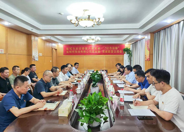 8月22日下午,鹽城招商場(chǎng)黨總支和市發(fā)改委機(jī)關(guān)第六黨支部開展了“紅色溫馨”結(jié)對(duì)共建活動(dòng)。市發(fā)改委機(jī)關(guān)黨委二級(jí)主任科員張錦鋒,市發(fā)改委基礎(chǔ)設(shè)施發(fā)展處負(fù)責(zé)人、機(jī)關(guān)六支部黨員代表,鹽城招商場(chǎng)黨員代表參加活動(dòng)。
