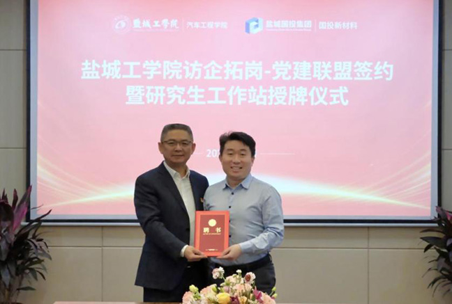 雙方還簽訂了黨建聯(lián)盟協(xié)議,王資生為國投新材料公司進(jìn)行研究生工作站授牌,國投新材料公司為鹽城工學(xué)院汽車工程學(xué)院副院長鄭竹安頒發(fā)“科技副總”聘書。雙方一致表示,要以此次合作為契機(jī),搭建學(xué)習(xí)交流平臺(tái),在產(chǎn)學(xué)研深度融合、學(xué)院學(xué)生就業(yè)上進(jìn)一步加強(qiáng)溝通對(duì)接、深化戰(zhàn)略合作,攜手譜寫校企合作新篇章。